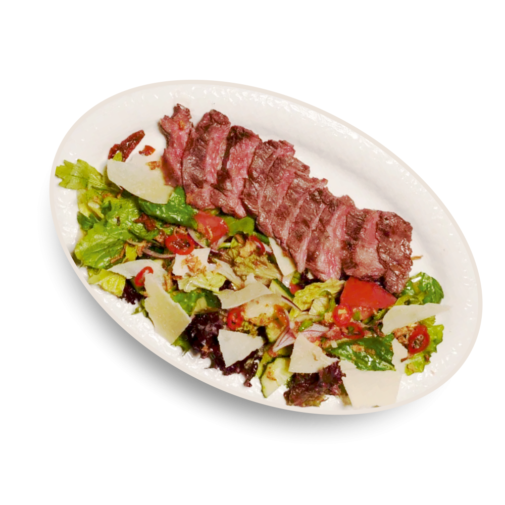 Зеленый салат со стейком бавет 280 грамм  «Стейк и Море»